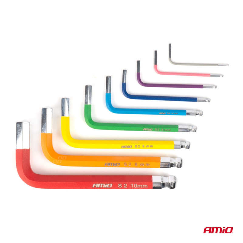 Rinkitės patikimą, kompaktišką šešiakampių raktų rinkinį su rutuliniu galu, pagamintą iš aukščiausios kokybės S2 įrankinio plieno. Šis 9 dalių rinkinys, sukurtas tikslumui, patvarumui ir patogumui ankštose erdvėse, idealiai tinka tiek profesionalams, tiek „pasidaryk pats“ entuziastams.