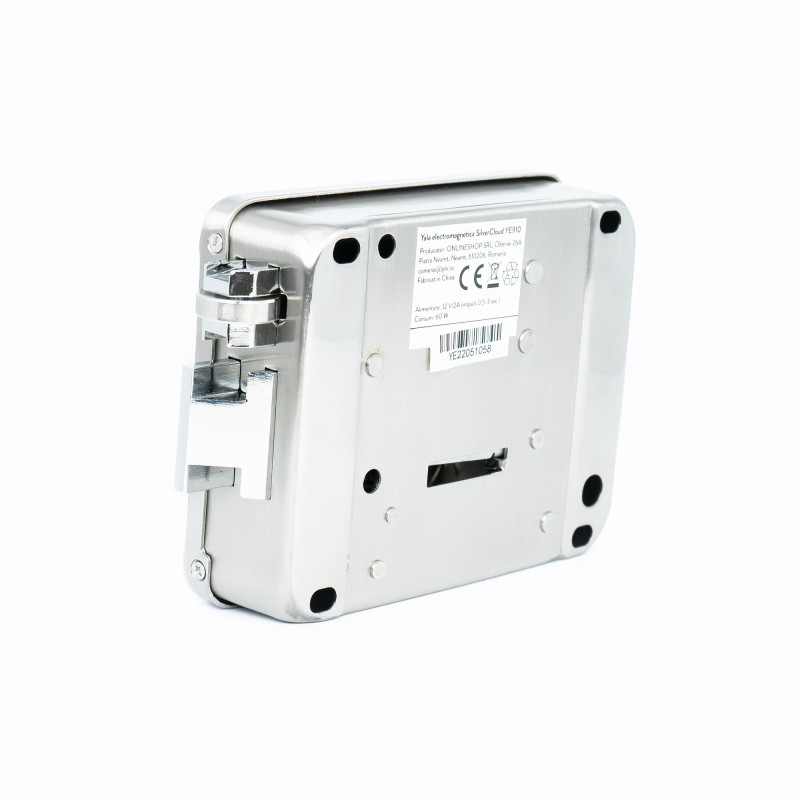„SilverCloud YE910“ elektromagnetinis yala, 12 V, nerūdijančio plieno, su dvigubu šakotuvu ir mygtuku, „Fail Secure NO“, suderinamas su prieigos kontrolės sistemomis