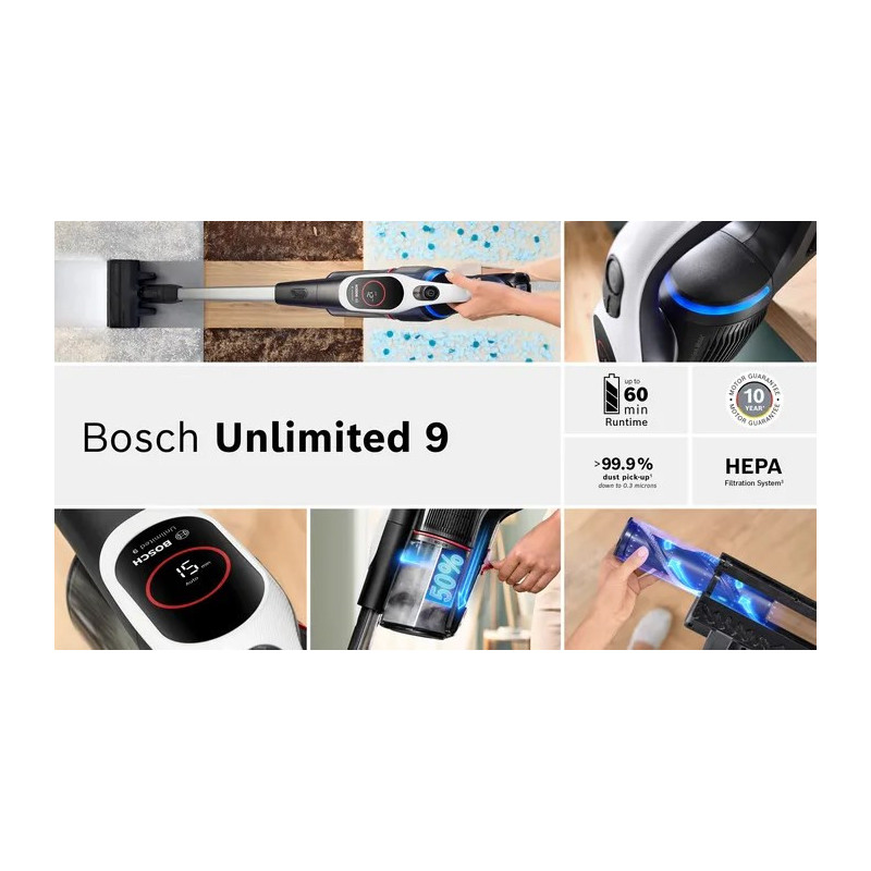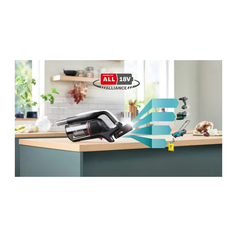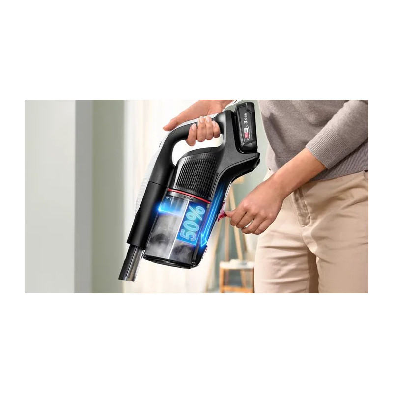 Bosch BCS931WBA lazdinis dulkių siurblys/elektrinė šluota, akumuliatorinis, sausas, HEPA dulkių maišelis, 0,4 l, balta, 3 Ah