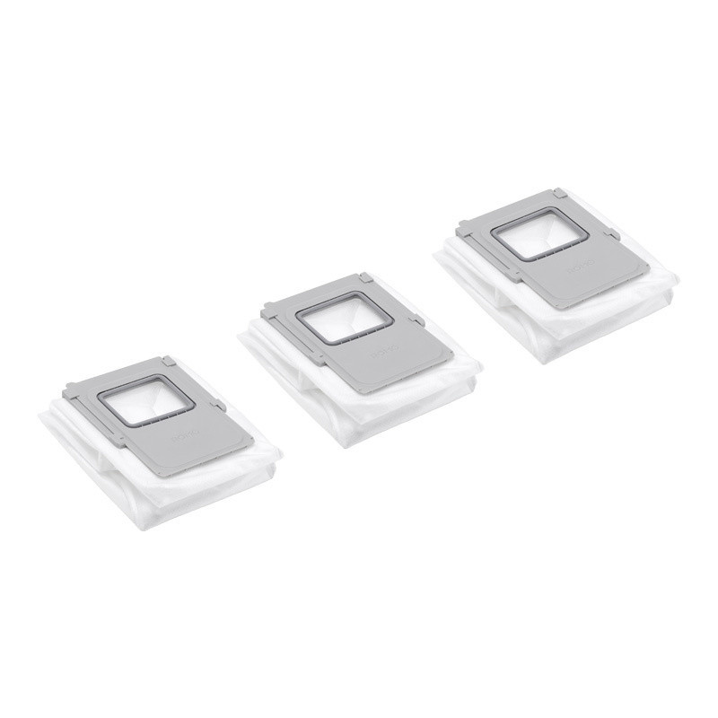 Three pieces of dust bags side by side on a gray background