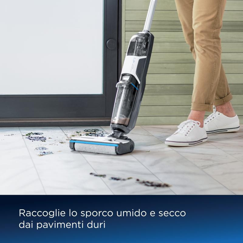 Bissell Dulkių siurblys Crosswave HF3 Select yra universali valymo priemonė, skirta tiek dulkių siurbimui, tiek grindų plovimui. Jis veikia 66 dB iki 75 dB triukšmo lygyje ir sveria 4 kg, todėl lengvai manevruojamas.