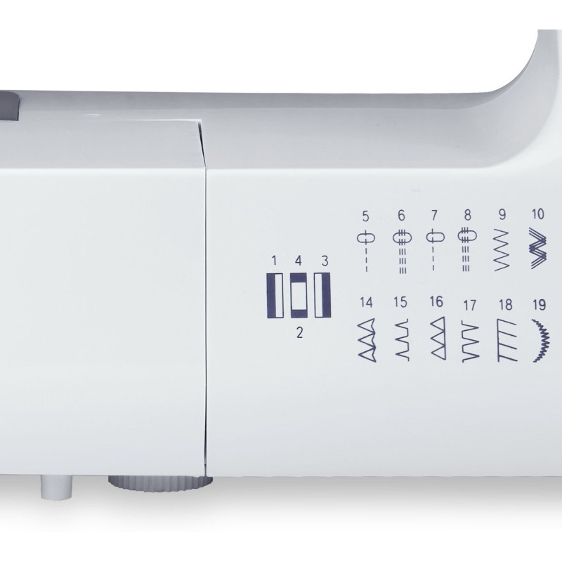 | Siuvimo mašinos priedai pridedami | Bobinas, Siūlių ardytojas, Universali koja, Užtrauktuko pėdelė, Nafta, Sagų kilpų pėdelė, Atsarginė adata |