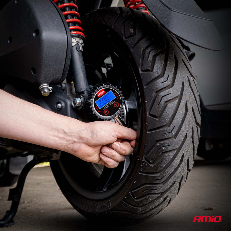 Šis skaitmeninis padangų slėgio matuoklis su besisukančia galvute ir atstatymo vožtuvu yra profesionalus įrankis, skirtas padangų slėgiui tikrinti. Įrengtas skaitmeniniu ekranu, jis garantuoja tikslius ir greitus matavimus iki 17 barų. Besisukanti galvutė leidžia lengvai pasiekti vožtuvus sunkiai pasiekiamose vietose, o išleidimo vožtuvas leidžia lengvai reguliuoti slėgį neišimant prietaiso.