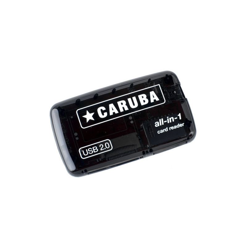 Caruba 35 in 1 kortelių skaitytuvas USB 2.0 palaiko platų atminties kortelių formatų spektrą, leidžiantį lengvai perkelti failus. Jame yra USB į mini USB kabelis, skirtas prijungti prie kompiuterių.
