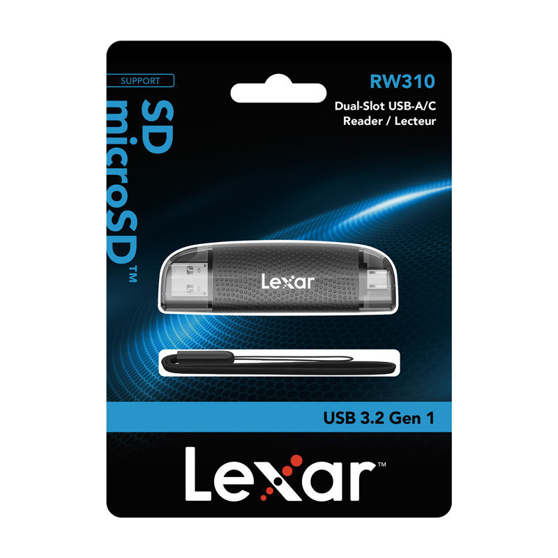 The Lexar LRW310X memory card reader is a compact and functional solution that provides instant access to micro SD and SD card data. With two built-in USB-A and USB-C ports, it is compatible with both older and latest devices. The USB 3.2 Gen 1 standard guarantees fast file transfers, making it an ideal tool for photographers, filmmakers and all users who value convenience and reliability.