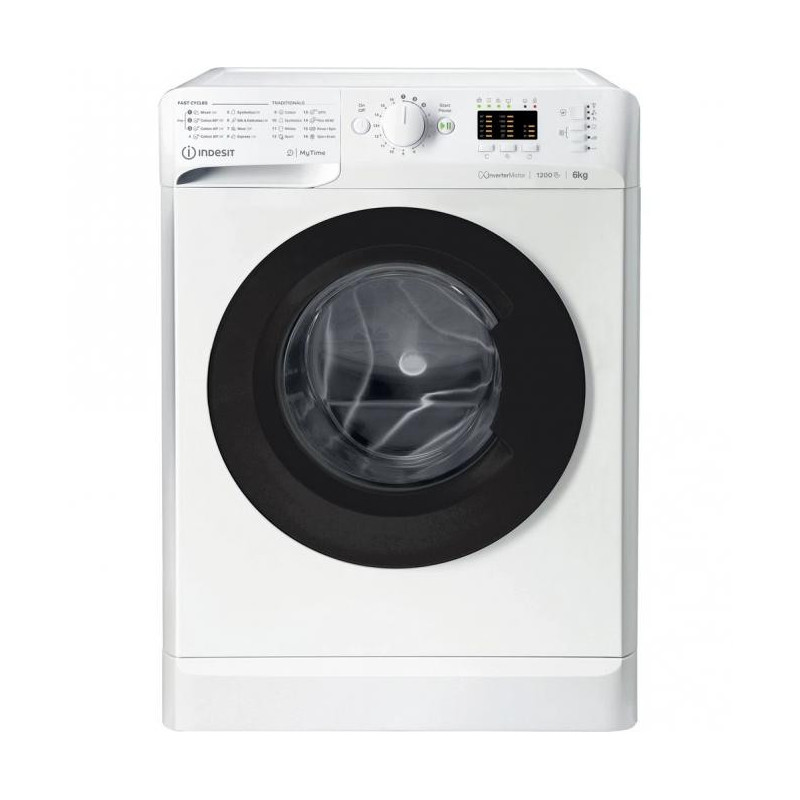 Juodos durelės. MyTime serijos skalbyklė- efektyvus pilnos įkrovos skalbimas greičiau nei per 1 valandą. Medvilnės, sintetikos, šilko, vilnos, sportinių drabužių skalbimo programos. Greitos programos: medvilnė 45', medvilnė 59', medvilnė 30', Mix 59', sintetika 59', šilkas 59', vilna 59', Express 15', dėmių šalinimo parinktis, užraktas nuo vaikų. Water Plus- optimizuoja vandens sunaudojimą, automatinio valymos ciklas, putų kontrolės sistema, skalbimo pradžios atidėjimas, triukšmo lygis gręžiant 76 dBA. Inverterinis variklis.