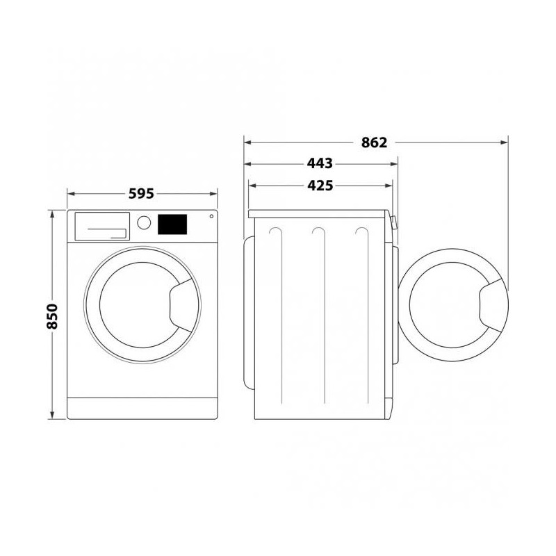Produkto grupė -Skalbimo mašina .Konstrukcijos tipas- Laisvai pastatomas. Montavimo tipas -Laisvai pastatomas. Nuimamas darbastalis -Ne .Pakrovimo tipas -Pakraunama iš priekio. Pagrindinė gaminio spalva- Balta.Elektros jungties galia (W)- 1850 .Srovė (A) -10. Įtampa (V)- 220-240 .Dažnis (Hz)- 50. Maitinimo laido ilgis (cm) -120.. Kištuko tipas -„Schuko“. Gaminio aukštis-850 .Gaminio plotis -595. Gaminio gylis- 425. Grynasis (neto) svoris (kg)- 60.5