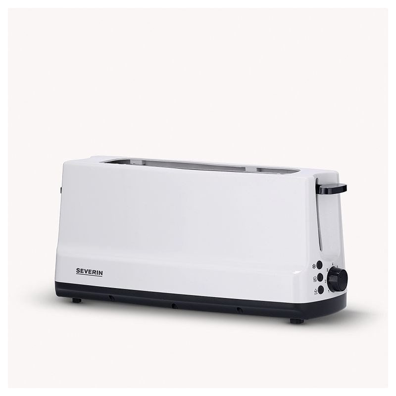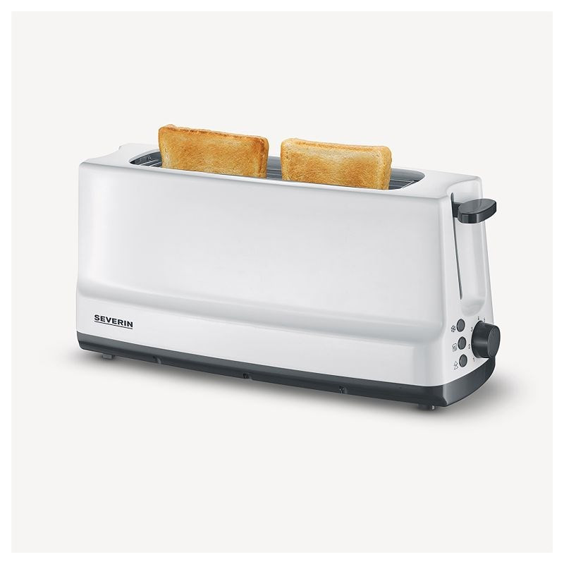 The Severin AT 2232 toaster has 800 W of power and can toast 2 slices at a time. Key features include a defrost function, removable crumb tray and variable browning control for the slices.