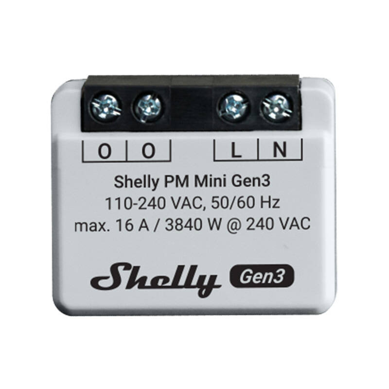 Shelly PM Mini Gen3 yra kompaktiškas energijos matuoklis, kuris realiu laiku stebi elektros energijos suvartojimą. Jis palaiko Wi-Fi ir Bluetooth ryšį, todėl lengvai integruojamas į išmaniuosius namų sistemų tinklus be papildomo centro.