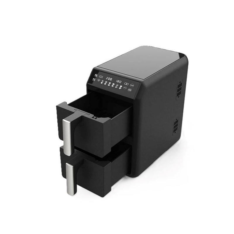 • Didelė 10L talpa su dviem kepimo krepšeliais efektyviam kepimui.