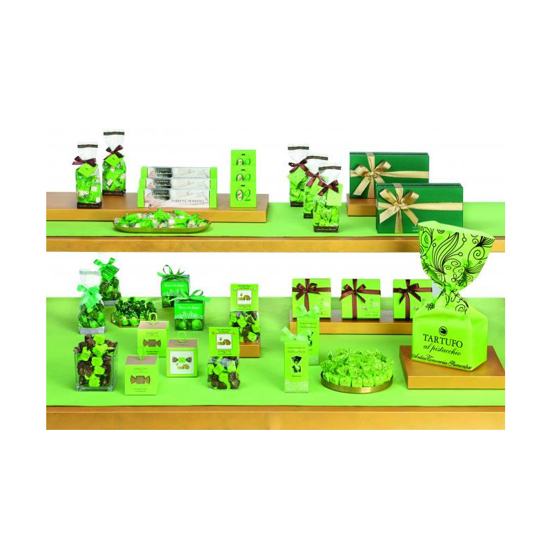 Originali receptūra, rinktiniai produktai bei meistriškas atidumas kiekviename triufelyje. Intensyvus pistacijų aromatas atsiskleidžia ir susitiprėja riešutams susiliejus su aukštos kokybės baltuoju šokoladu. Tai unikalus ir neįprastas receptas, kuris kartu sujungia išskirtinius ingredientus ir gundo net ir išrankiausią gurmaną. Geriausi rinktiniai pistacijų riešutai pažymėti ES ženklu su saugoma geografine nuoroda (I.G.P.) - skrudinti, skaldyti ir aplieti aukščiausios kokybės šokoladu.