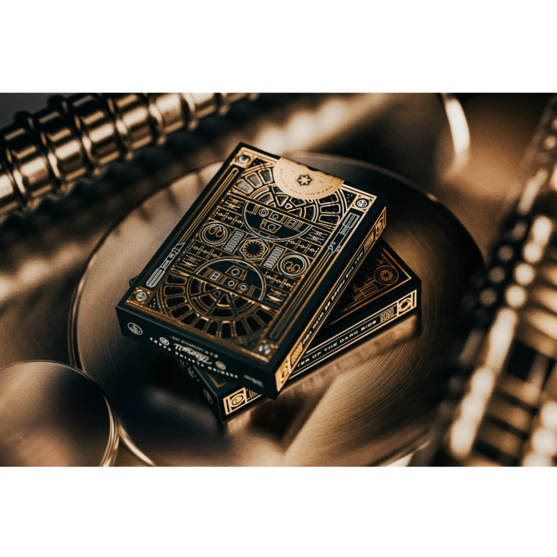 Kaladės pakuotė yra kvapą gniaužianti, su įspūdinga galaktikos aukso folija, sumaišyta su skaidria, atspindinčia folija, kuri sukuria Millennium Falcon™ kabinos lango priekyje iliuziją su Imperial Throne Room langu gale. Šiame specialiame leidime pavaizduoti keli ikoniniai abiejų jėgos pusių elementai. Kortų nugarėlės atrodo taip, lyg jos būtų padengtos tuo pačiu auksu, naudotu jūsų mėgstamam droidui C-3PO™. Atspausdinta aukščiausios kokybės auksine folija, nugarėlės dizainas yra visiškai stulbinantis visais kampais ir gražiai blykčioja šviesoje. Šis leidimas tikrai kilęs iš kitos tolimos galaktikos... Prisijunkite prie Jedi Knights arba nukreipkite savo vidinį Sitą su mėgstamais veikėjais iš šios pasakos sagos: Luke'u Skywalkeriu, Hanu Solo, Obi-Wan Kenobi, Leia Organa, Rey, Darthu Vaderiu, Imperatorius Palpatine, Kylo Ren ir daugeliu kitų! Ar susigundysite tamsiosios pusės galia? O gal šviesioji pusė bus jūsų vadovas?