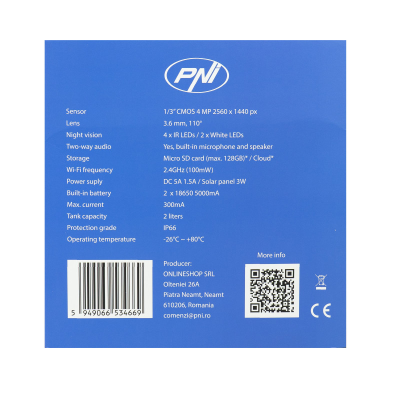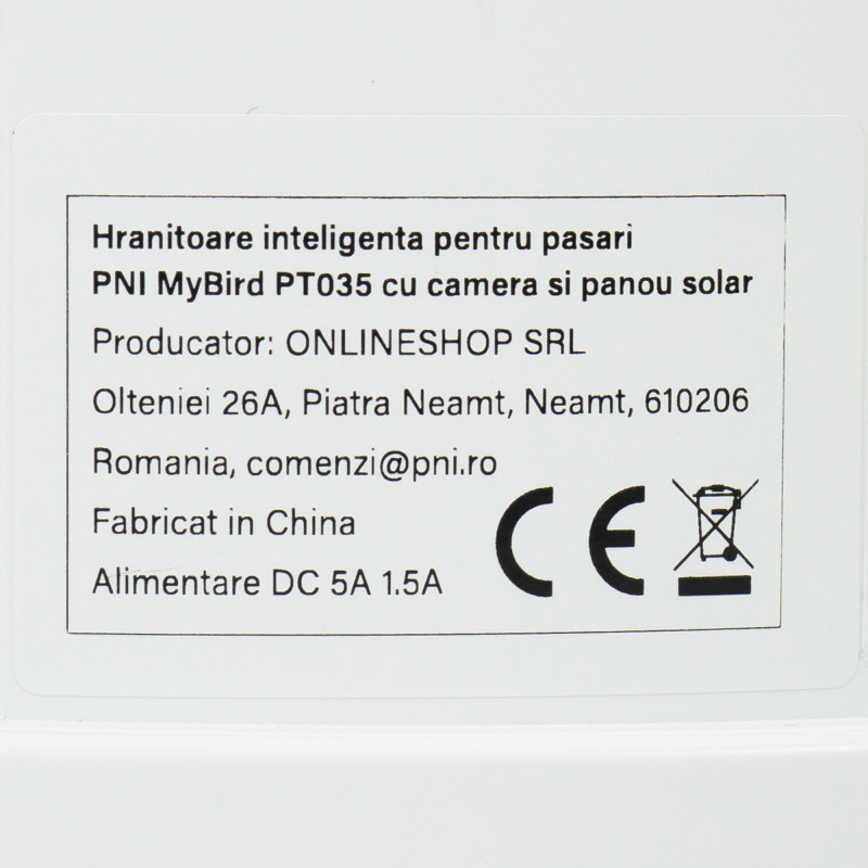 Išmanus paukščių lesyklėlė PNI MyBird PT035 su 4MP „Wi-Fi“ kamera ir 3W saulės baterija, 2 l maisto baku, specialia programa, judesio aptikimu, momentiniais pranešimais, „micro SD“ kortelės lizdu, dvikrypčiu garsu, naktiniu matymu