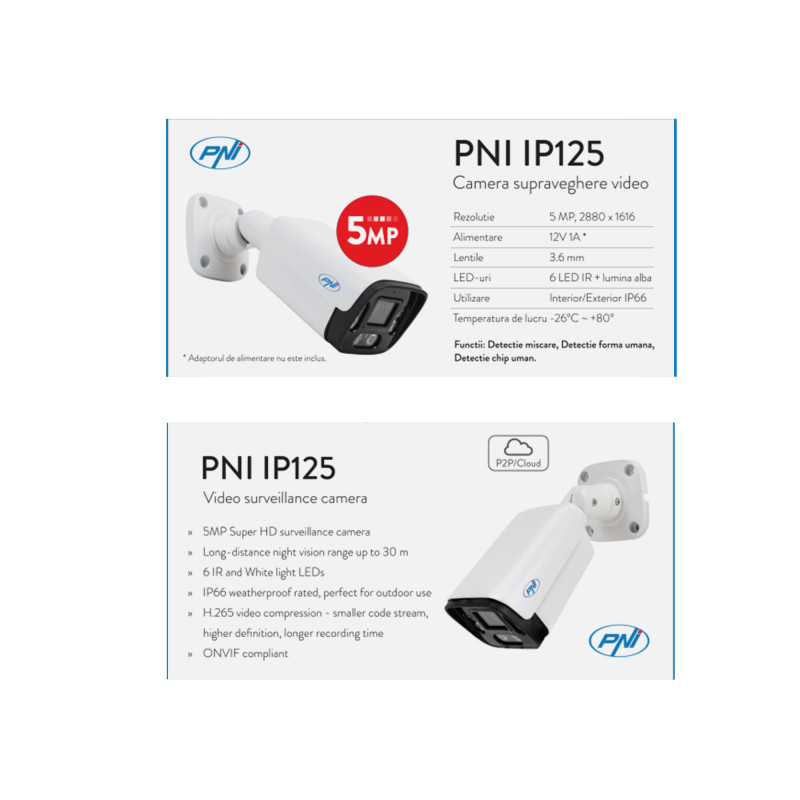 NVR PNI House IP716 vaizdo stebėjimo paketas, 16 IP kanalų 4K, H.265, ONVIF ir 12 PNI IP125 kamerų su IP, 5MP, IP66
