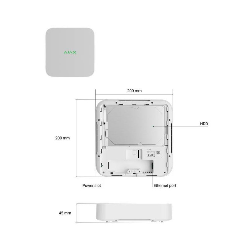 8 kanalai, iki 4K, H.265/H.264, iki 100 Mbps pralaidumas, iki 16 TB 3,5" disko talpa (nepridedama). Suderinamas su visais „Ajax“ šakotuvais.