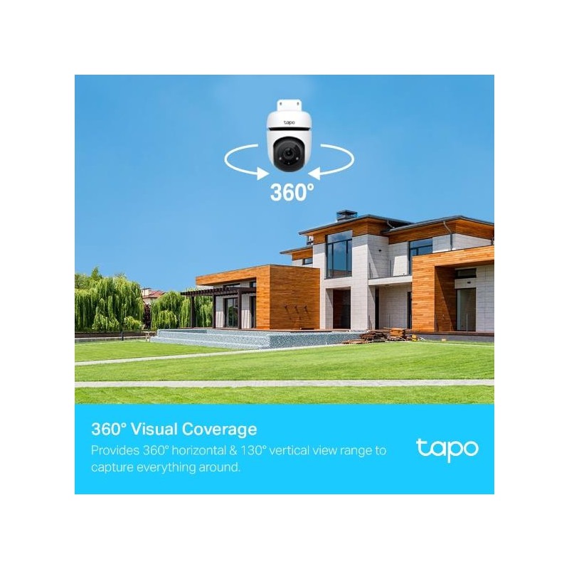 | Santrauka | TP-Link Tapo lauko panoraminio/pakreipimo apsaugos WiFi kamera. Tipas: IP apsaugos kamera, Palaikomas išdėstymas: Viduje ir lauke, Ryšio technologija: Belaidė. Tvirtinimo tipas: Lubos/Siena/Stulpas, Produkto spalva: Balta, Forma: Kupolinė. Sukimosi kampas: 360°. Optinio jutiklio dydis: 25,4 / 3 mm (1 / 3"). Naktinio matymo atstumas: 30 m, LED tipas: IR, Infraraudonųjų spindulių bangos ilgis: 850 nm |