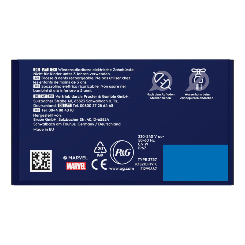 Oral-B iOral-B Kids Spiderman vaikiškas besisukantis dantų šepetėlis, juodas