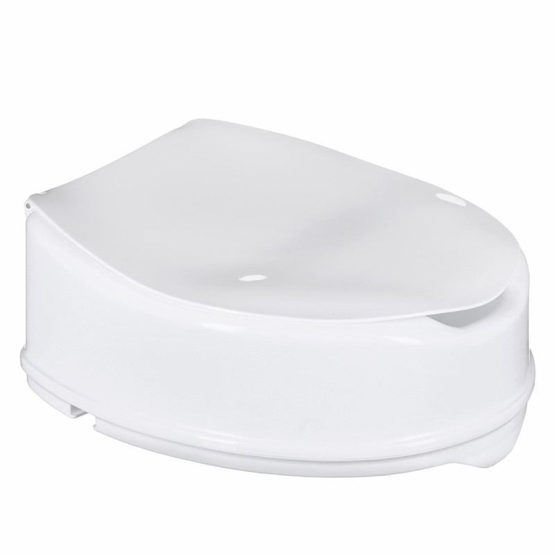 Aukštas tualeto sėdynės pakėlėjas su dangčiu, sukurtas patogumui ir lengvam naudojimui, idealiai tinka vartotojams, kuriems reikalinga papildoma parama.