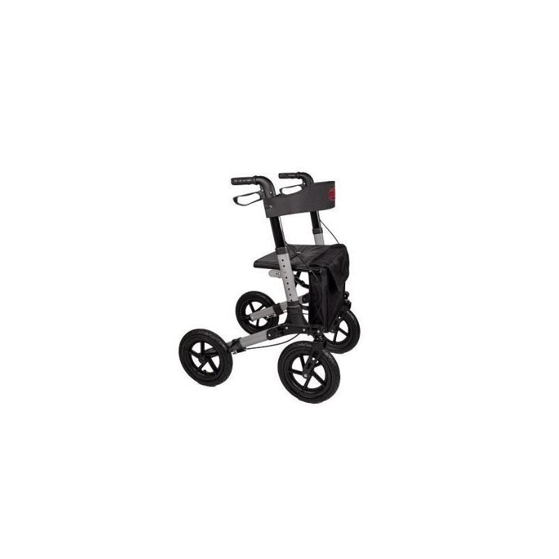 Aliuminė vaikštynė AT51036, skirta off-road naudojimui, pasižymi 28 cm skersmens ratais, 136 kg maksimaliu svorio apribojimu, sulankstomu dizainu ir reguliuojamu aukščiu, užtikrinančiu patogumą ir stabilumą.