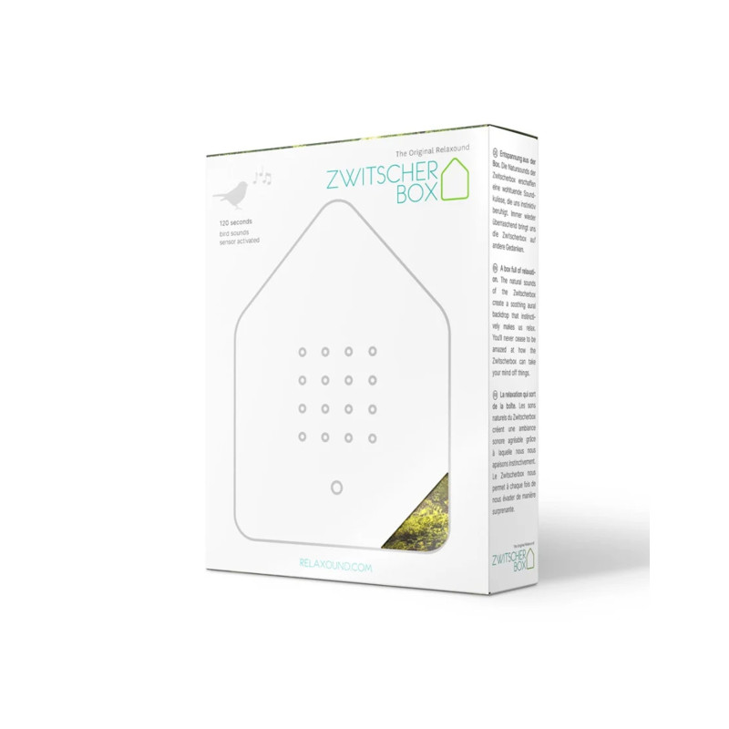 Skambantis inkiliukas su sensoriumi, skleidžia miško paukščių garsus. Nesvarbu, ar tai būtų vonios kambarys, tualetas, virtuvė, koridorius, balkonas ar biuras: čiulbėjimo dėžutę galite pastatyti bet kur arba tiesiog pakabinti ant sienos.