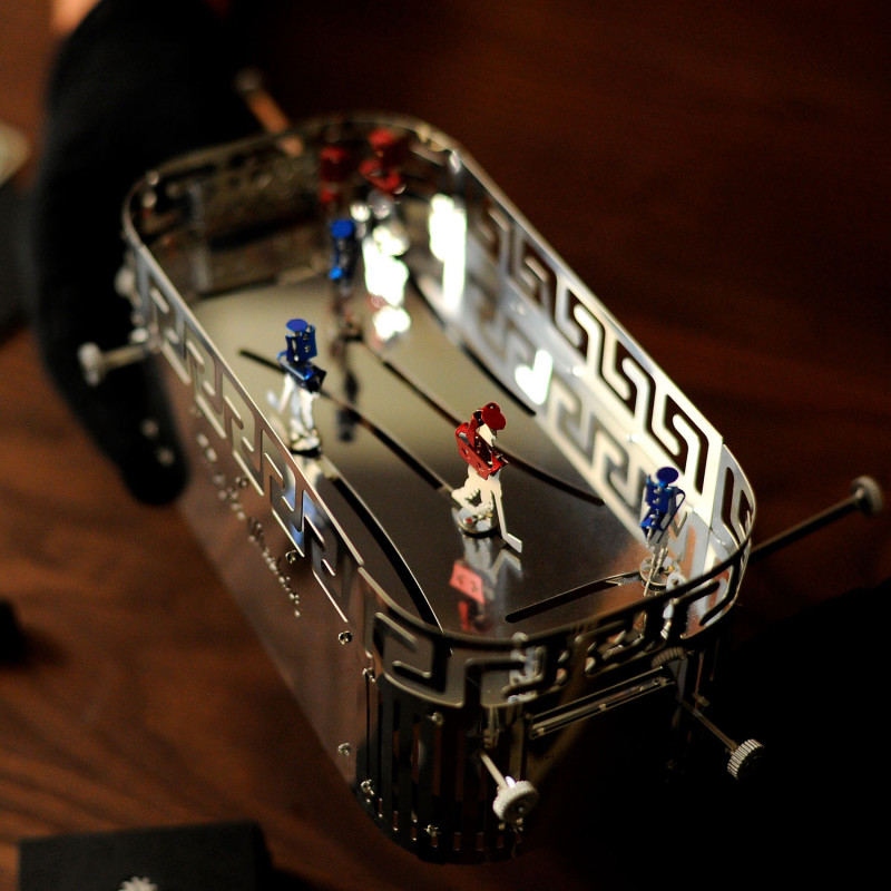 Rinkinys apima surinkimo detales, įrankių rinkinį ir vizualų gidą 12 kalbų. Žaidime yra šeši ledo ritulio žaidėjai, pagaminti iš poliruoto nerūdijančio plieno, o jo matmenys yra 230 × 130 × 85 mm.