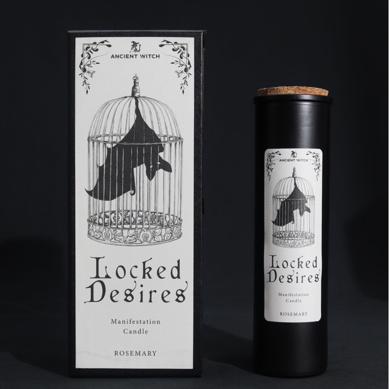 Žvakė "Locked Desires" su rozmarinų kvapu skirta manifestavimo praktikoms. Jos degimo laikas siekia iki 50 valandų, o svoris yra 708 gramai.