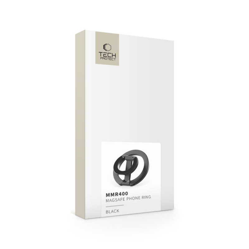 „Tech-Protect MMR400“ yra modernus, su „MagSafe“ suderinamas magnetinis piršto žiedo laikiklis, pagamintas iš lengvo, bet patvaraus aliuminio lydinio, kuris greitai pritvirtinamas prie su „MagSafe“ suderinamo dėklo arba tiesiai prie telefono galinės dalies. Jis užtikrina stabilų ir saugų sukibimą, idealiai tinka laikyti išmanųjį telefoną viena ranka, sumažinant riziką jį numesti. Išskleistas žiedas veikia kaip patogus stovas – puikiai tinka žiūrėti filmus ar atlikti vaizdo skambučius.