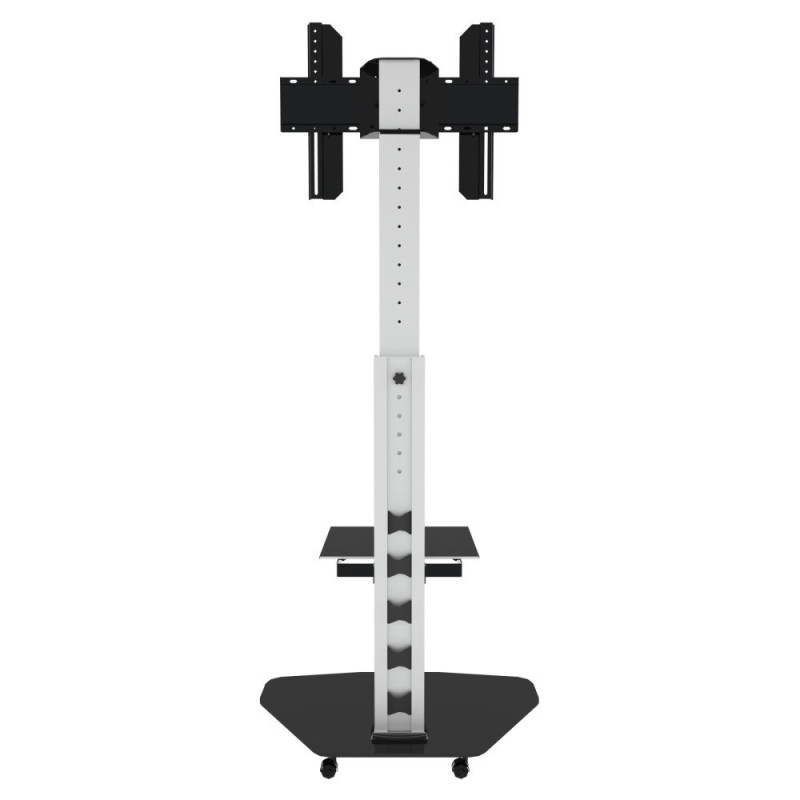 „Techly“ grindų stovas su lentyna ir vežimėliu, LCD / LED / plazminis televizorius, 37–70 colių, sidabrinis