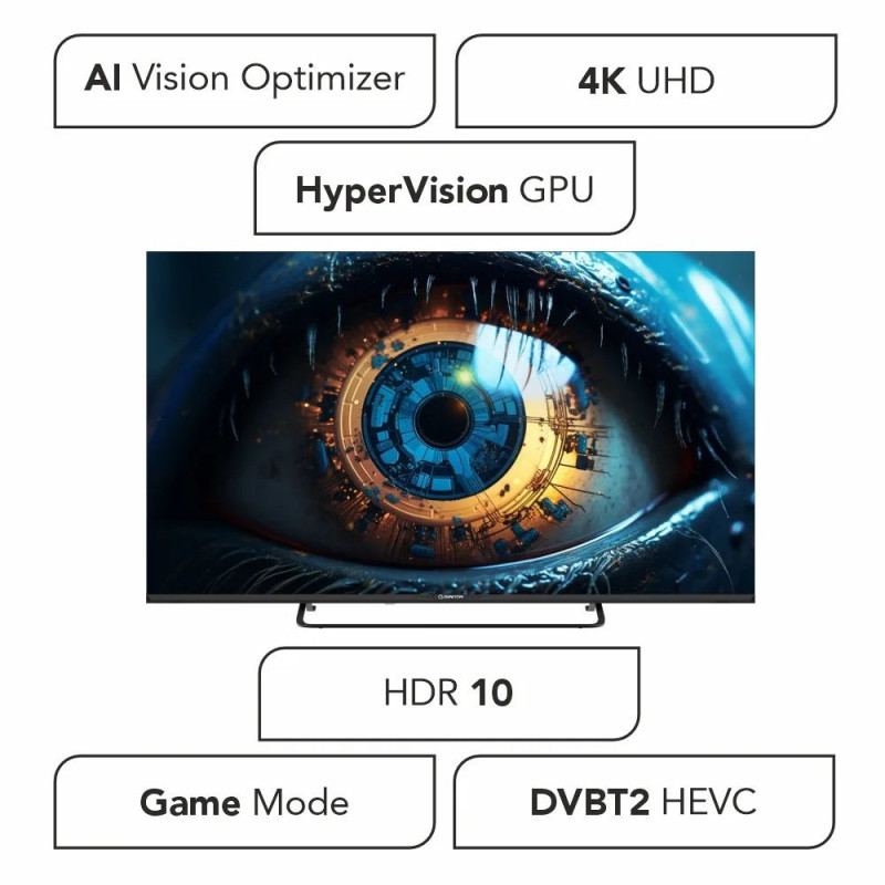 Televizorius siūlo žaidimo režimą, užtikrinantį mažą delsą, ir naudoja IPS (plokštumoje perjungiamo) LED panelę su 4K UHD raiška.
