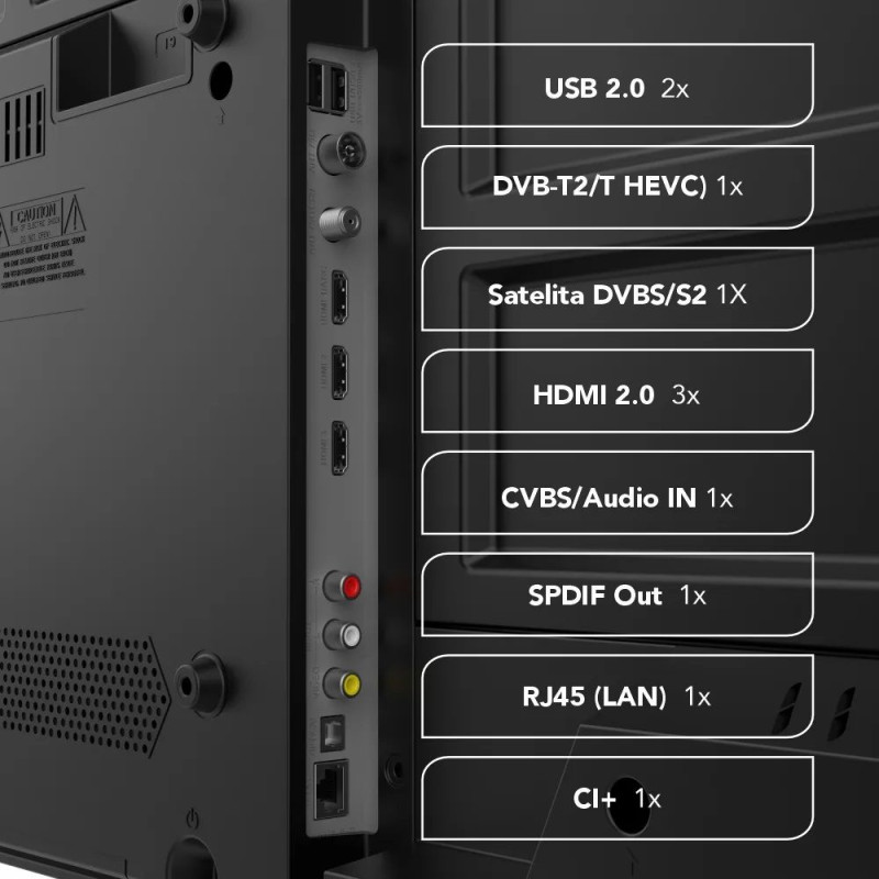 Jame yra du SAT ir DVB-T2 imtuvai. Dizainas yra berėmės ir plonas, jį maitina galingas keturių branduolių procesorius.