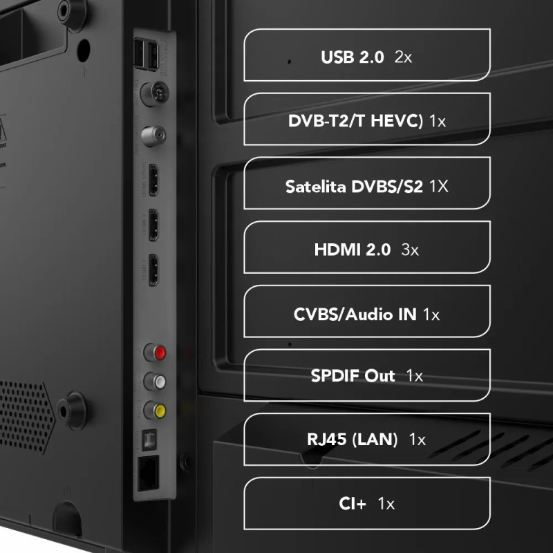Ekranas palaiko HDR 10 ir „Dolby Digital Plus 5.1“ erdvinio garso formatus.