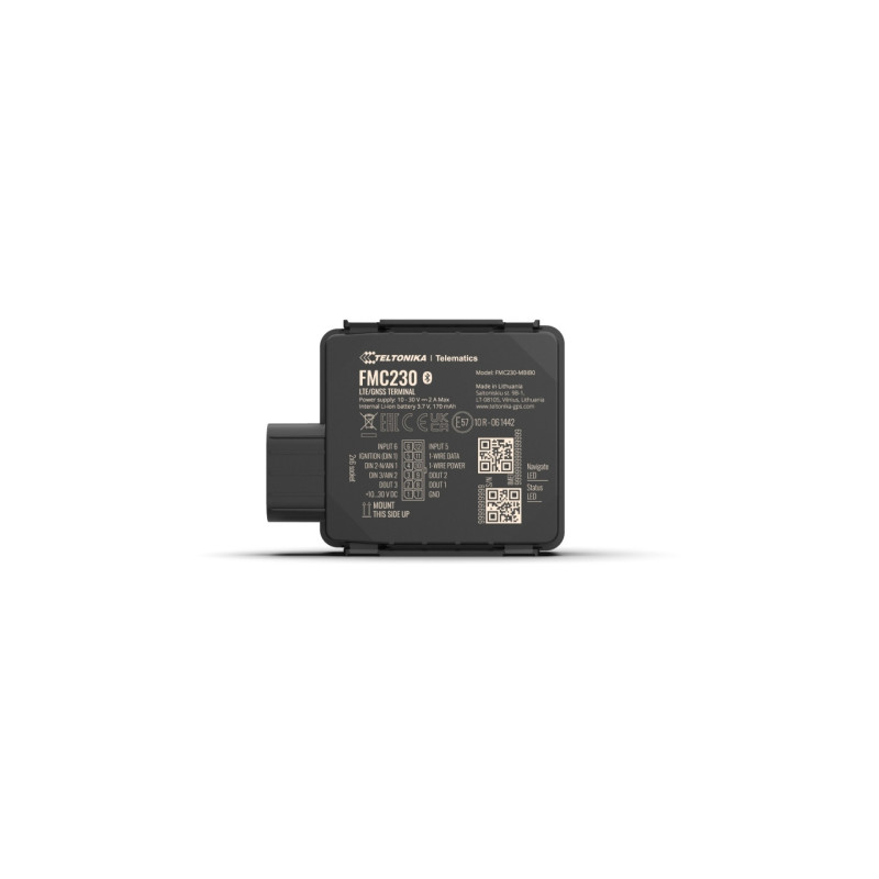 FMC230 - tai vandeniui ir dulkėms atsparus realaus laiko sekimo įrenginys su 4G (LTE Cat 1) tinklo palaikymu bei 2G (GSM) atsargine (fallback) suderinamumo galimybe. Įrenginyje integruotos vidinės GNSS ir LTE antenos, konfigūruojamos skaitmeninės, analoginės, neigiamos ir impulsinės įvestys, trys DOUT išėjimai, "Bluetooth®" ryšys bei atsarginė baterija.