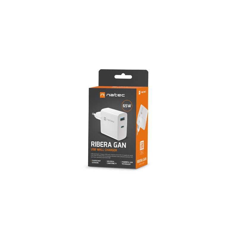 Maitinimo Adapteris - Natec Ribera 1x USB-A + 1x USB-C 65W Baltas