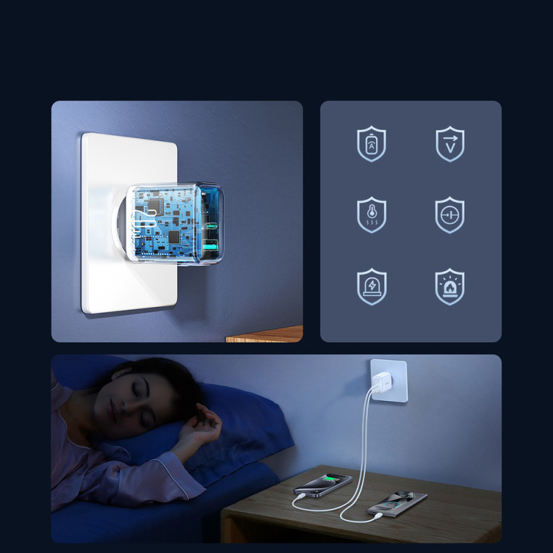 „Joyroom JR-TCF21“ leidžia įkrauti du įrenginius vienu metu, o tai itin praktiška kasdieniam naudojimui. Dėl USB-C ir USB-A prievadų galite prie jo prijungti du įrenginius vienu metu, todėl nereikia turėti kelių įkroviklių. Tai idealus sprendimas šeimoms, poroms ar žmonėms, turintiems daugiau nei vieną mobilųjį įrenginį.