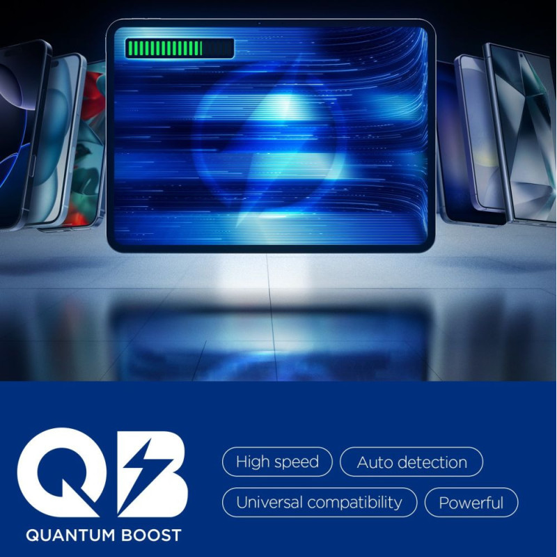 Į komplektą taip pat įeina aukštos kokybės 100 W USB-C–USB-C laidas su E-Marker (100 cm), užtikrinantis stabilų ir saugų energijos perdavimą. 15 pakopų saugos sistema apsaugo nuo perkaitimo, perkrovimo ir įtampos šuolių. Be to, „Quantum Boost“ technologija išmaniai atpažįsta prijungtus įrenginius ir automatiškai kiekvienam iš jų pritaiko optimalų energijos tiekimą.