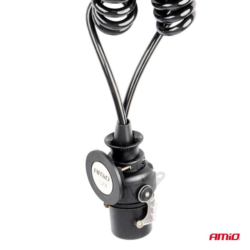 7 kontaktų jungtyse naudojama liejimo technologija garantuoja ilgaamžiškumą, sandarumą ir atsparumą atšiaurioms eksploatavimo sąlygoms, įskaitant lietų, dulkes, temperatūros svyravimus ir vibraciją. Spiralinė 5 metrų ilgio kabelio konstrukcija užtikrina lankstumą ir apsaugo nuo mechaninių pažeidimų, kai jis ištempiamas.