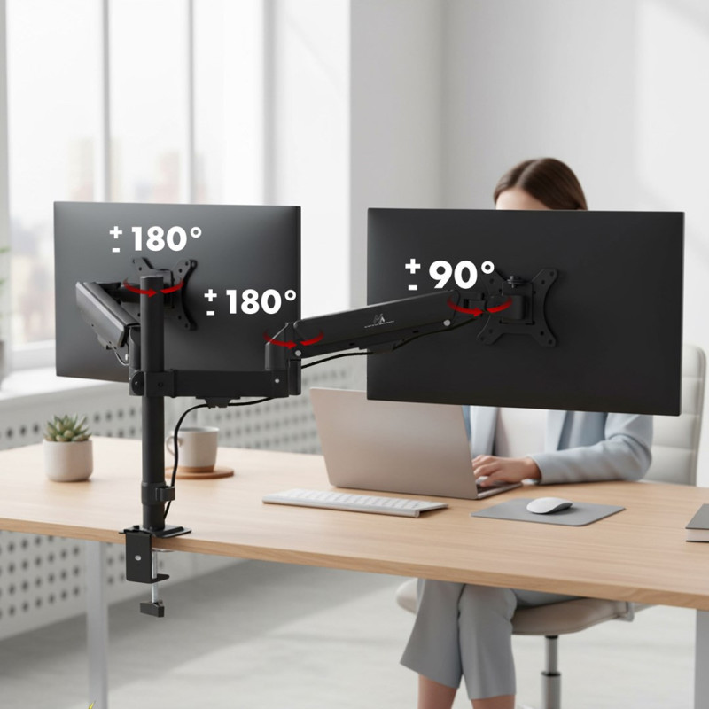 Maclean 2 monitor mount, gas spring, 17"-32", 2-10kg, black, MC-136