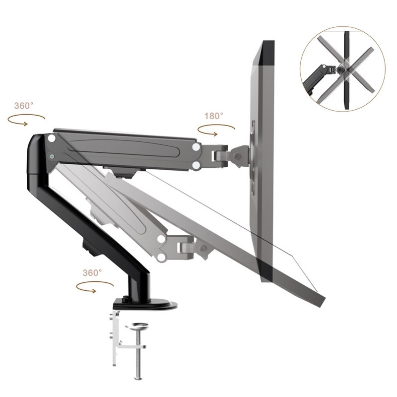 Monitoriaus laikiklis - Maclean MC-860N 13"-27", 8 kg, dujinė spyruoklė, juoda