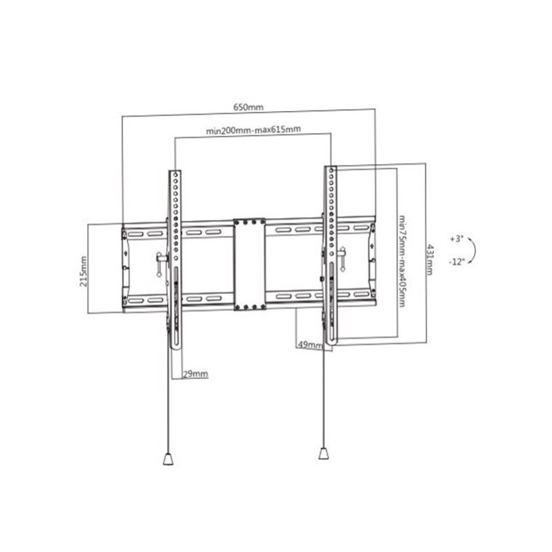 Laiko televizorius nuo 37" iki 80" su maksimaliu svorio pajėgumu 70 kg. Siūlo nuolydžio kampo intervalą nuo -12 iki 3° ir pagamintas iš juodo plieno, užtikrinančio patvarumą.