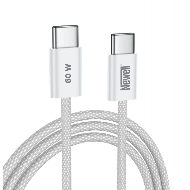The Newell USB-C to USB-C 60W cable is 2 meters long and supports fast charging up to 60 watts. It has a durable braided design and allows data transfer speeds of up to 480 Mbps.