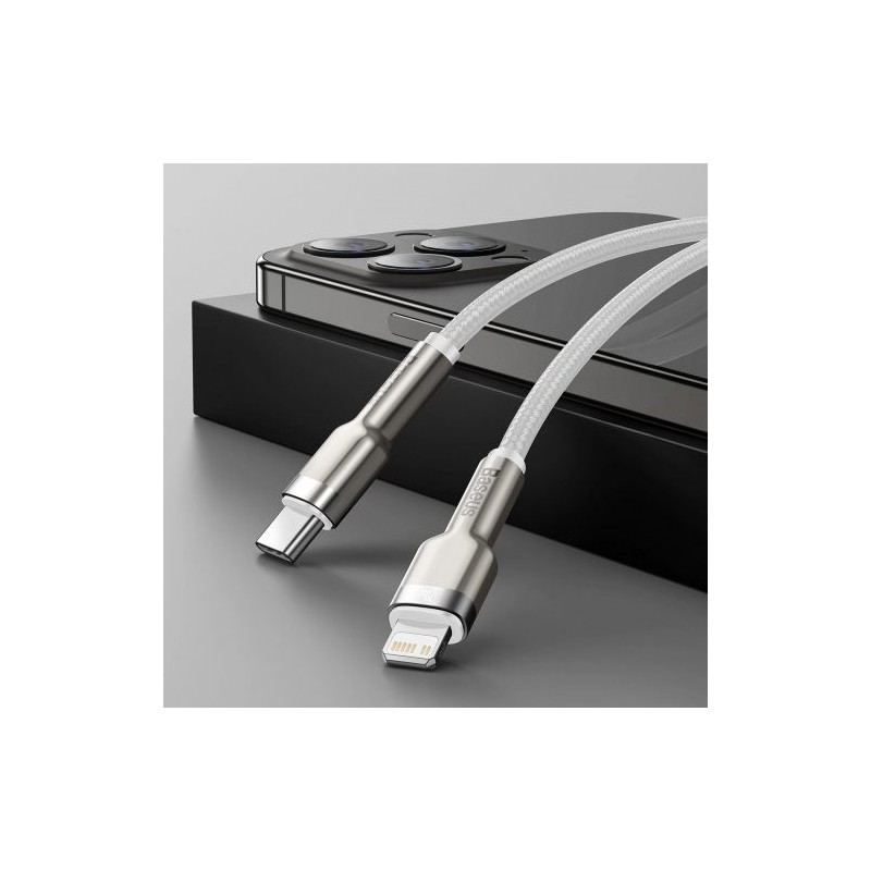 Baseus Cafule Series Metal Data cable with USB-C / Lightning connectors, power up to 20W and 1 m length - white
