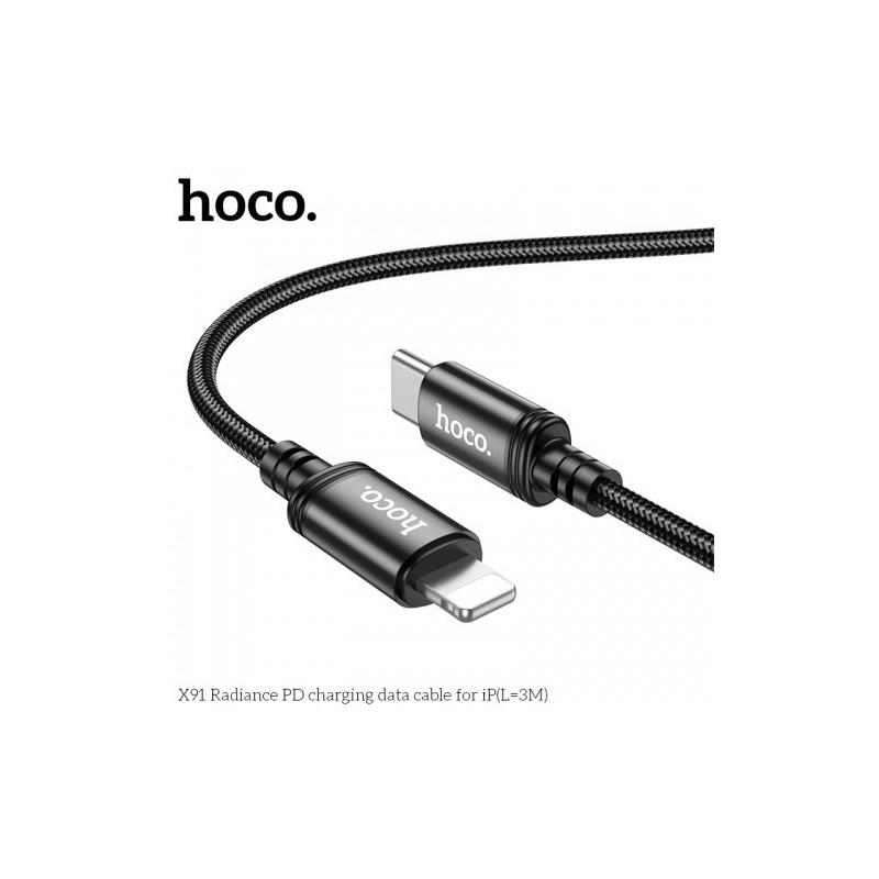USB Kabelis Hoco 'X91' juodas 'Type-C / Lightning' 300cm iki 20W (pritaikytas Apple iPhone)