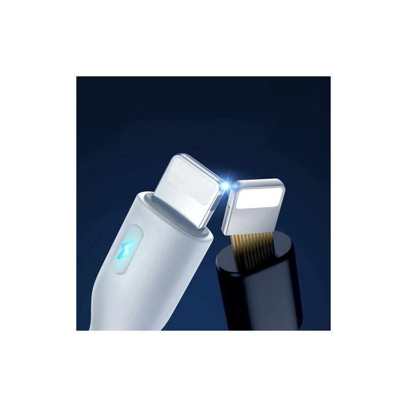 Safe and fast charging of your smartphone or tablet is provided by the Joyroom S-CL020A13 USB C - Lightning cable. At the same time, it can power a mobile device (up to 20 W) and transfer data (at a speed of up to 480 Mbps). The cable has a built-in intelligent chip that automatically adjusts the intensity and power. The LED indicator located on the plug will let you know when the charging process has started. It is also a convenient solution at night - it allows you to easily locate the cable on the desk. The USB C - Lightning cable is made of TPE - a material that is pleasant to the touch and very flexible.