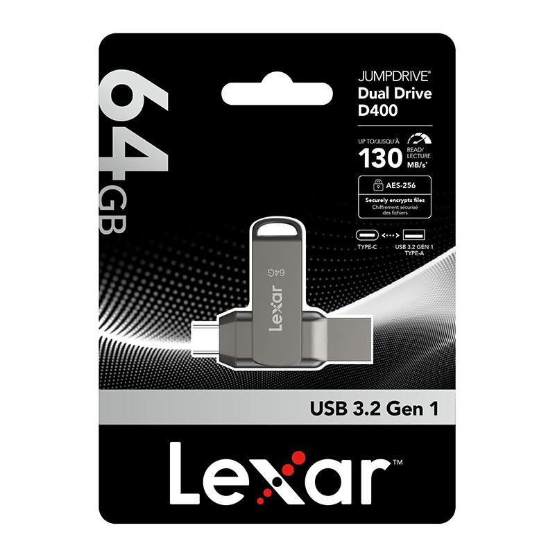 The Lexar JumpDrive Dual Drive D400 USB 3.1 is a portable memory stick that combines convenience and versatility. With dual USB Type-C and Type-A connectors, users can easily transfer data between different devices - from smartphones and tablets to laptops and desktops. Regardless of the operating system - Android, macOS or Windows - the flash drive ensures compatibility and smooth operation.