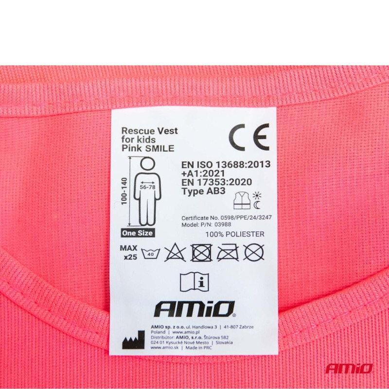 Vaikiška šviesą atspindinti įspėjamoji liemenė, rožinė, su šypsena, AMIO-03988