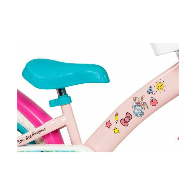"Hello Kitty" 12" dviratis - idealus pasirinkimas 3-5 metų vaikams. Tvirtas plastiko ir plieno rėmas užtikrina saugumą jauniems dviratininkams.