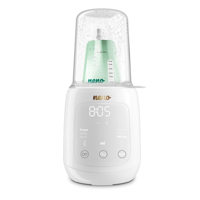 Garų sterilizacija yra be cheminių medžiagų ir trunka 10 minučių. Įrenginys turi LED ekraną, automatinį išjungimą ir gali talpinti vieną butelį.