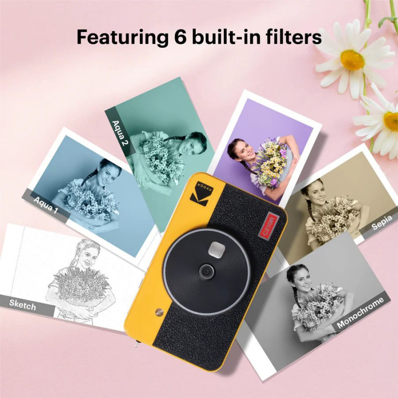 Momentinis fotoaparatas + nuotraukų spausdintuvas: „Kodak Mini Shot 2 Retro“ yra skaitmeninis fotoaparatas su įmontuotu nuotraukų spausdintuvu, todėl galite spausdinti nuotraukas arba atšaukti jas padarę. Šiuo momentiniu fotoaparatu taip pat galite spausdinti 2,1 x 3,4 colio nuotraukas tiesiai iš savo mobiliojo įrenginio galerijos per „Bluetooth“. „Kodak Mini Shot 2 Retro“ suderinamas su „Apple iPhone“, „iPad“ ir „Android“ įrenginiais.