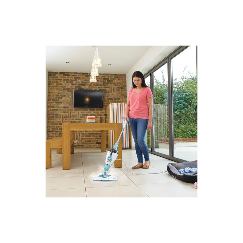 „Black Decker BHSM1610DSM“ nešiojamas garinis valytuvas, 0,5 l, 1600 W, vandens spalvos, balta