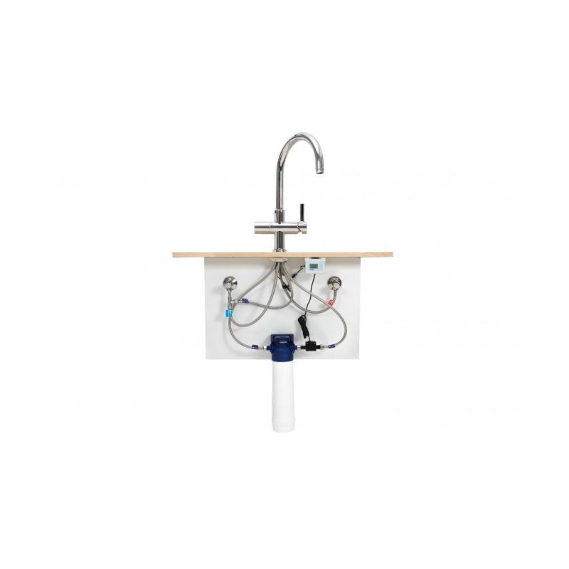 BWT AQA monitorius montuojamas tiesiai po plautuve ir rodo filtro talpą, atsižvelgiant į vandens kietumą ir veikimo laiką. Filtro keitimo indikatorius yra prijungtas prie filtro per srauto jutiklį. Kai tik išnaudojama filtro talpa, pasigirsta garsinis signalas. Tada filtro kasetę galima pakeisti vos keliais paprastais žingsniais .